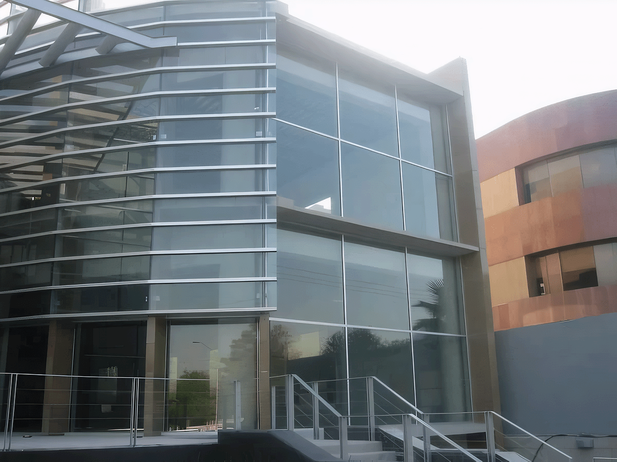 Sostenidas únicamente por la bisagra de piso. las puertas de cristal templado son la ideal combinación para una fachada que permite el paso de la luz, dando transparencia sin barreras visuales.